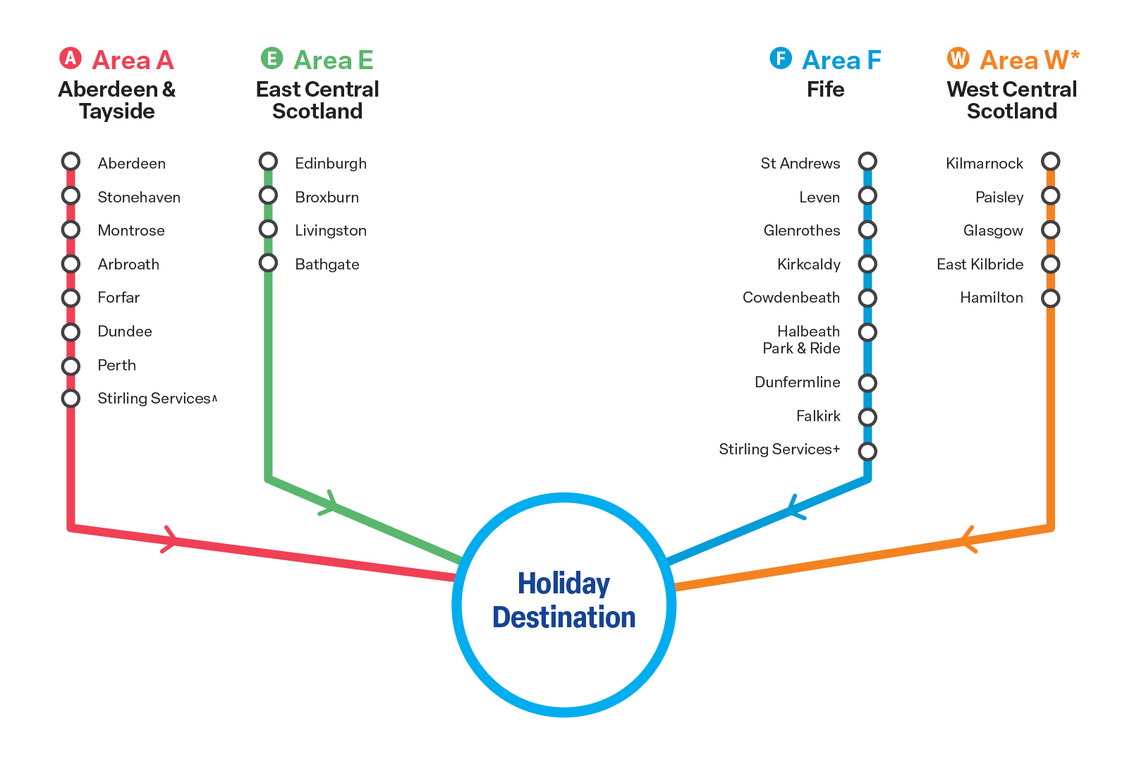 * For customers traveling south, it is recommended that for a shorter journey you book your holiday departing from our Midlands area, which interchanges at Tamworth.