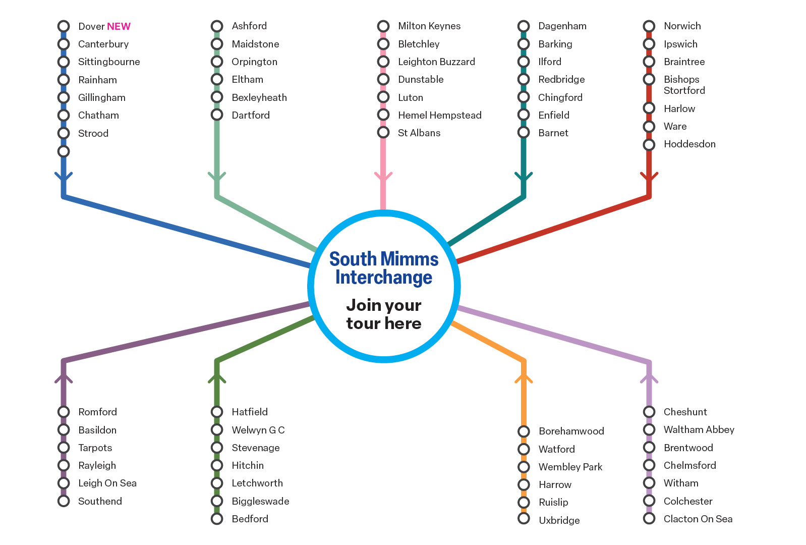 We will pick you up close to home and take you to your nearest interchange, where you will join your tour coach to travel to your holiday destination.
