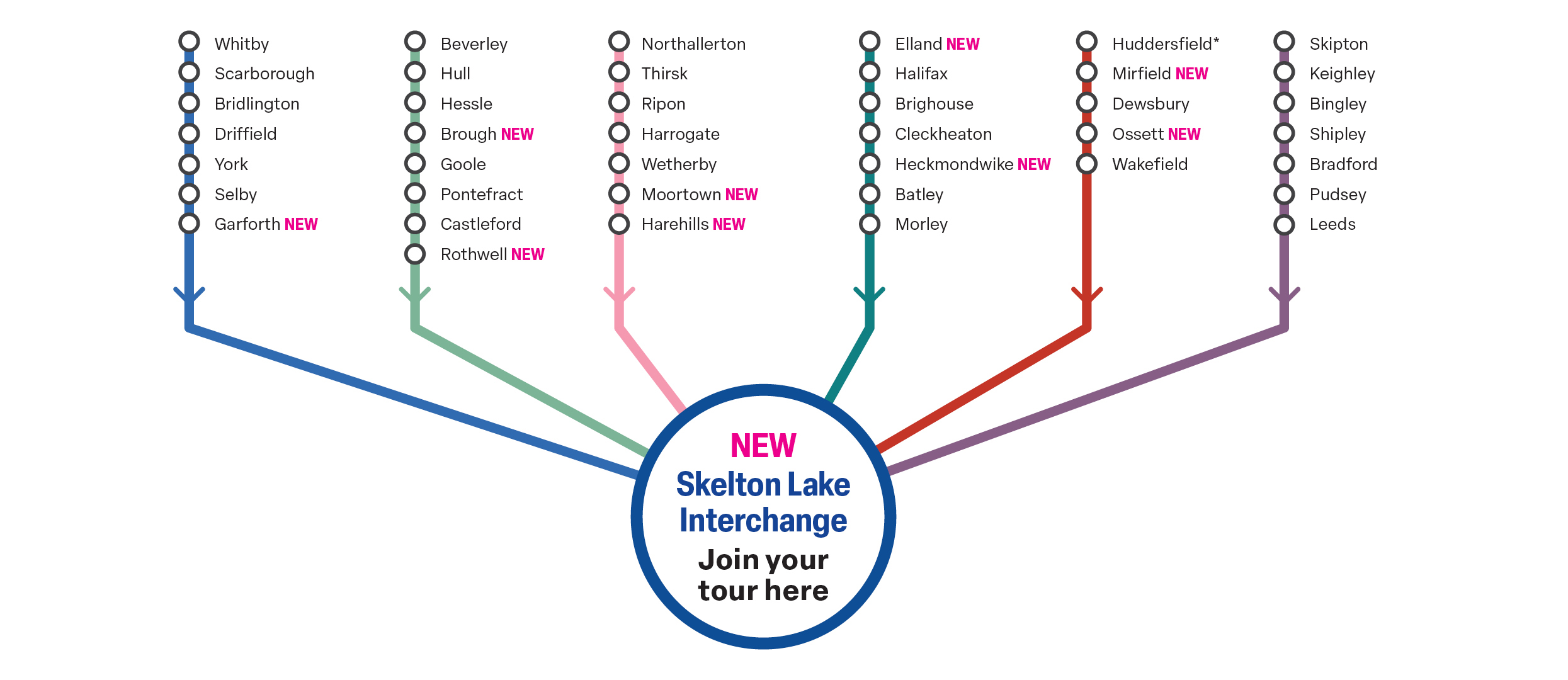 * Customers travelling from Huddersfield can book a holiday departing via Rotherham or Skelton Lake interchange.